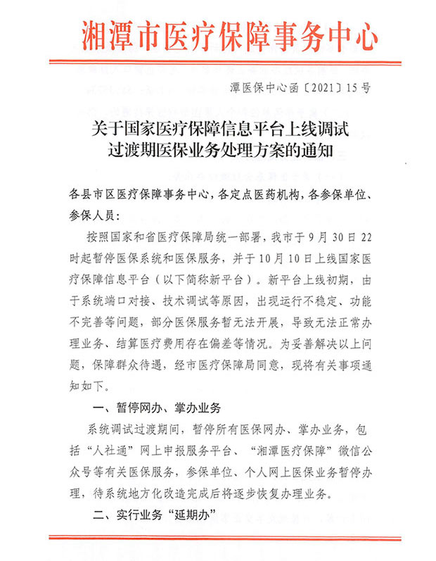 關(guān)于國(guó)家醫(yī)保平臺(tái)上線過(guò)渡期業(yè)務(wù)處理方案的通知