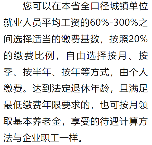 情況三:制度實施時,您距60周歲的規(guī)定領(lǐng)取年齡超過15年,應(yīng)按年繳費(fèi),累計繳費(fèi)不少于15年才能領(lǐng)養(yǎng)老金。